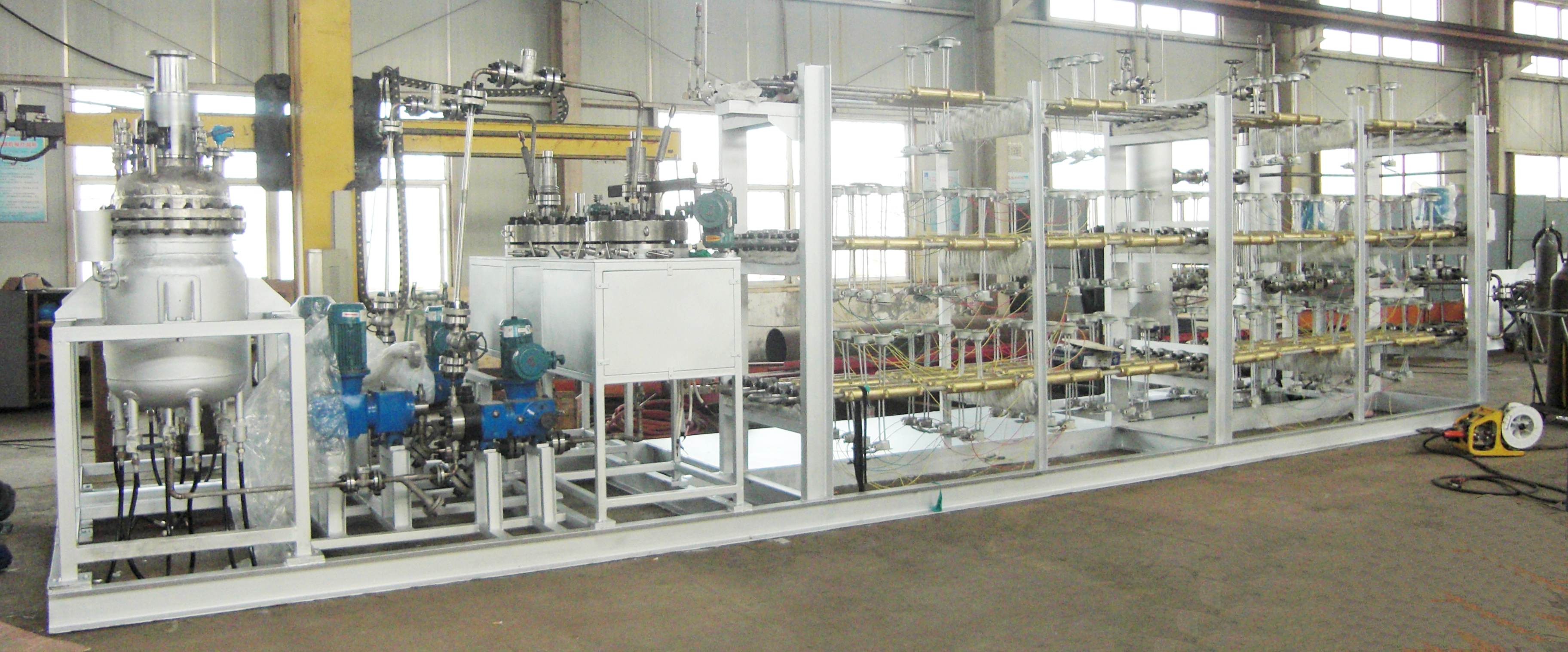 加氫反應(yīng)分為吸熱反應(yīng)和放熱反應(yīng),有些加氫反應(yīng)在反應(yīng)過程中會釋放大量的熱能。為了生產(chǎn)安全,并及時(shí)降低釜內(nèi)溫度,有些工藝要求釜內(nèi)配大面積的冷卻盤管。此時(shí)單層冷卻盤管無法滿足工藝要求,需要雙層或更多層盤管有效及時(shí)降溫。正威機(jī)械生產(chǎn)的6層盤管內(nèi)配吸氫攪拌槳,加…